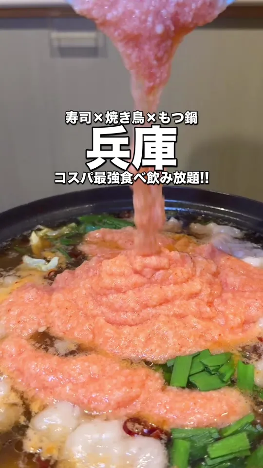 寿司焼き鳥もつ鍋!?🧡 『衝撃価格!寿司×焼き鳥×もつ鍋食べ放題!』紹介!✨ ___________________________ 📍#トリサカナ 神戸三宮店 〒650-0011 兵庫県神戸市中央区下山手通1丁目1−1 東新ビル 4階A ⏰ 平日 16:30〜23:30 土日祝 16:00〜23:30 🚗駐車場無し 🚃神戸三ノ宮駅徒歩3分 💰2時間食べ飲み放題コース ¥4,980円 ※記載事項は投稿時の情報です ___________________________ 焼き鳥とか寿司の食べ放題って まぁ正直他の店にも全然あると思うけど ここはなんともつ鍋も食べ放題!🧡✨ ぷるっぷるのモツを味わいながら 飲み放題もついてこの値段は結構良くない?🙌 駅から近いのも最高やし、 次の呑み会はここで決まり!🍺 ___________________________ まいどおおきに〜!!『ちゃんみな』です🐙 このアカウントでは大阪から発進した 関西のおでかけ情報を発信中!!📢 『おもしろスポット・映えグルメ・ホテル情報』 定番スポットから穴場スポットまで紹介!👀 ええやん!って思ったら いいね&フォローで応援おおきに!🌈 @kansai_chanmina ←Instagramも要チェック!! ___________________________ PR #関西おでかけ #兵庫おでかけ #三ノ宮 #もつ鍋食べ放題 #食べ放題 #食べ飲み放題