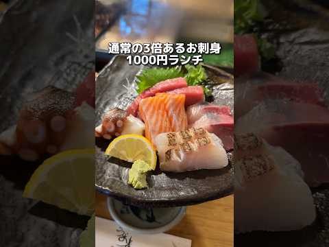 大阪・難波の隠れたコスパ抜群ランチ店です。1000円で新鮮なお刺身を堪能でき、通常の3倍の厚さです。お刺身以外に唐揚げも付き、満足感の高い一軒です。
