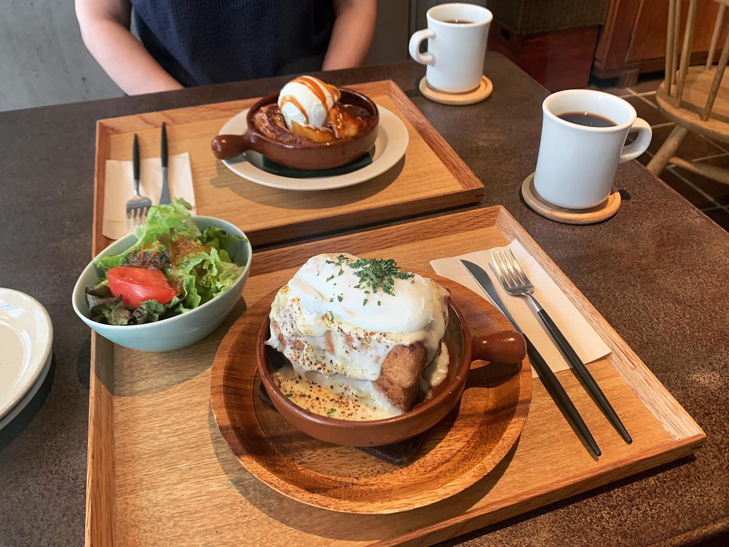 クロックマダムとフレンチトースト、どうしても食べてみたかったので母とシェア🍽️