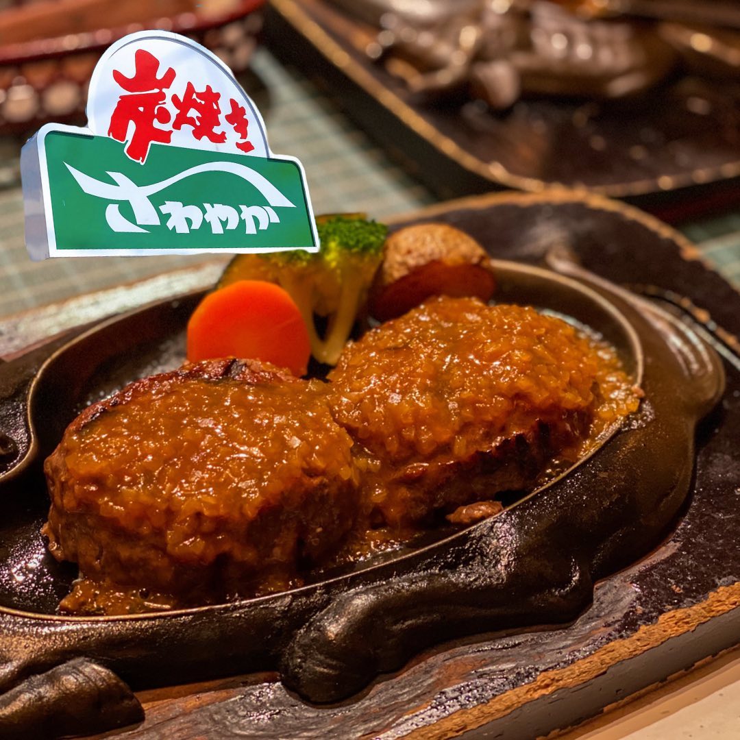 静岡独自のげんこつハンバーグを鉄板でレアに仕上げるライブ感が魅力です。静岡以外に出店しないこだわりを持つお店の一つで、浜松高塚店はファミリー向けの広い席が多く待ち時間が短め。オニオンソースが定番で肉の旨みを引き立てます。