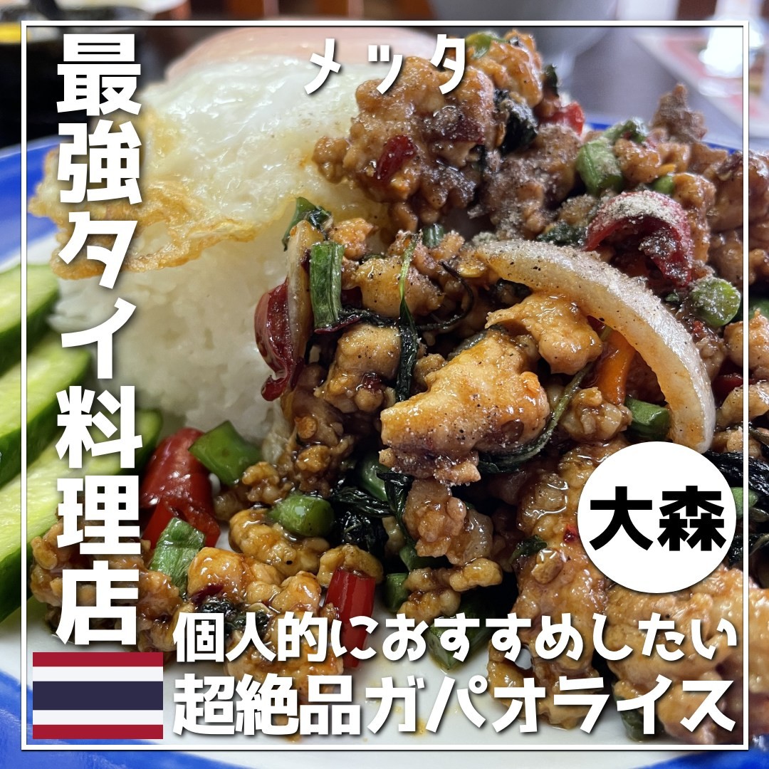 大森駅近くのタイ料理店メッタは、東南アジア風の超ローカルな店内が魅力。ガパオライスは現地の味で辛さもしっかり、ピラブカウやライカノに並ぶ美味しさです。