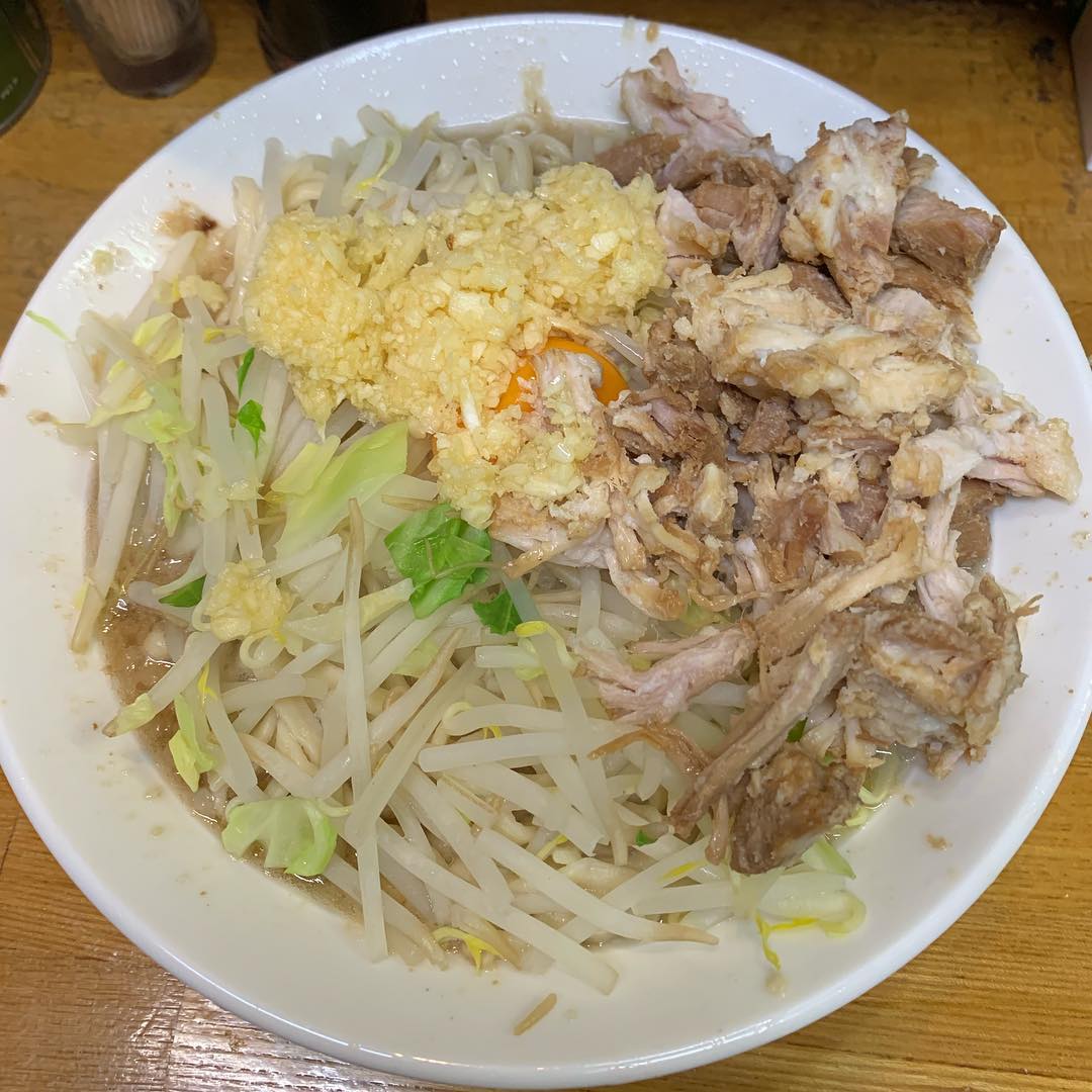 平和島のラーメン髭は、汁なしが定番の二郎系インスパイア店。ほぐし豚と柔らかい麺が主役で、ラー油と香味で味変を楽しめます。ニンニク多めのパンチが魅力で、油そばも提供します。