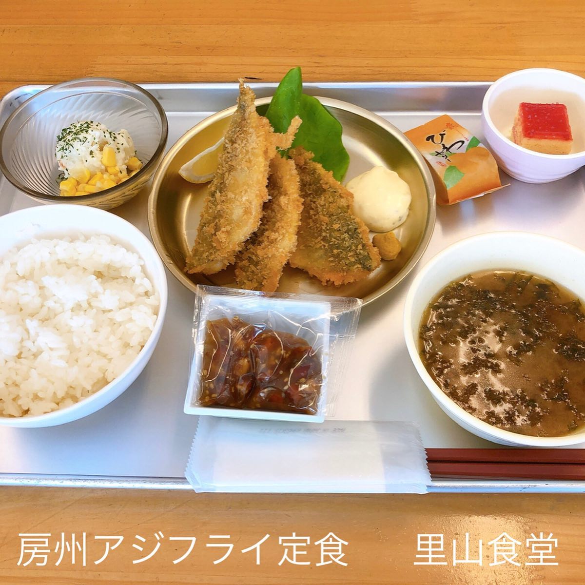 お昼は【里山食堂】さんにて『房州アジフライ定食』😊