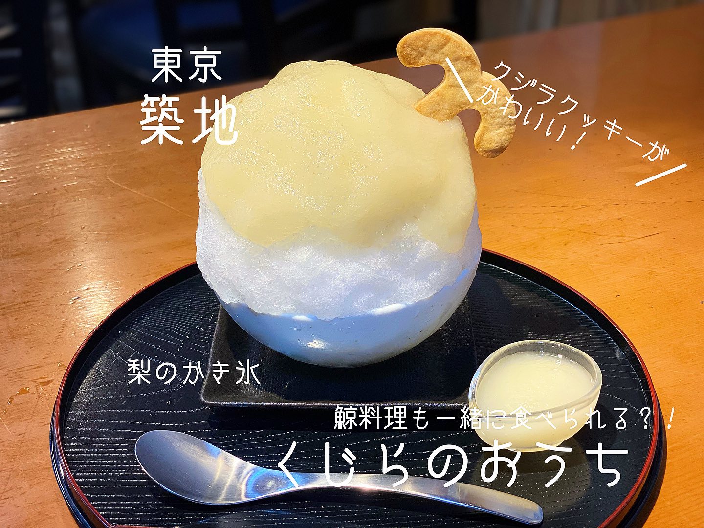 築地市場の路地裏にある隠れ家のかき氷店。旬の果実や野菜を使った自家製シロップで、添加物不使用の濃厚な氷を味わえます。尾びれは自家製クッキー。昭和レトロな雰囲気と鯨料理も楽しめるのが特徴です。