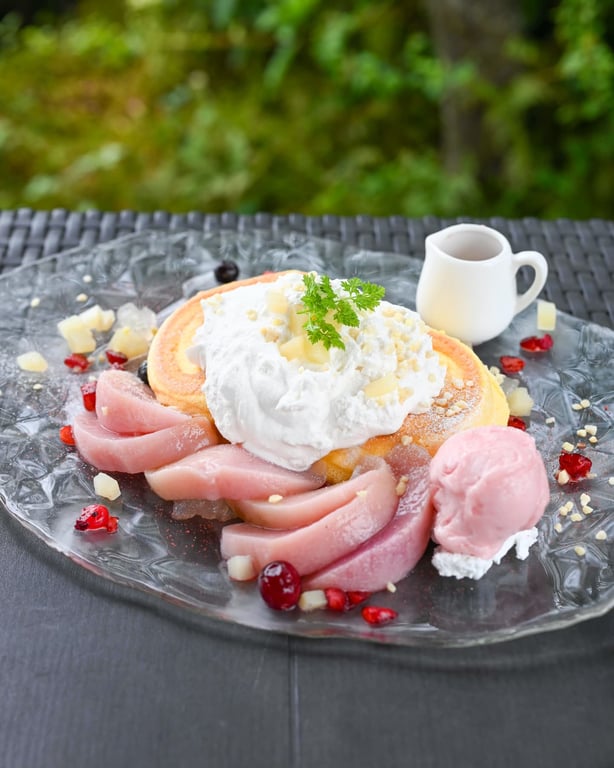 鹿沼市村井町のはちみつカフェ Honey Bは、国産はちみつを活かしたパンケーキが楽しめます。3種の蜂蜜の食べ比べや夏の果実を使った爽やかな一品が人気。テラス席が特徴で、11:00-19:00、火曜定休。