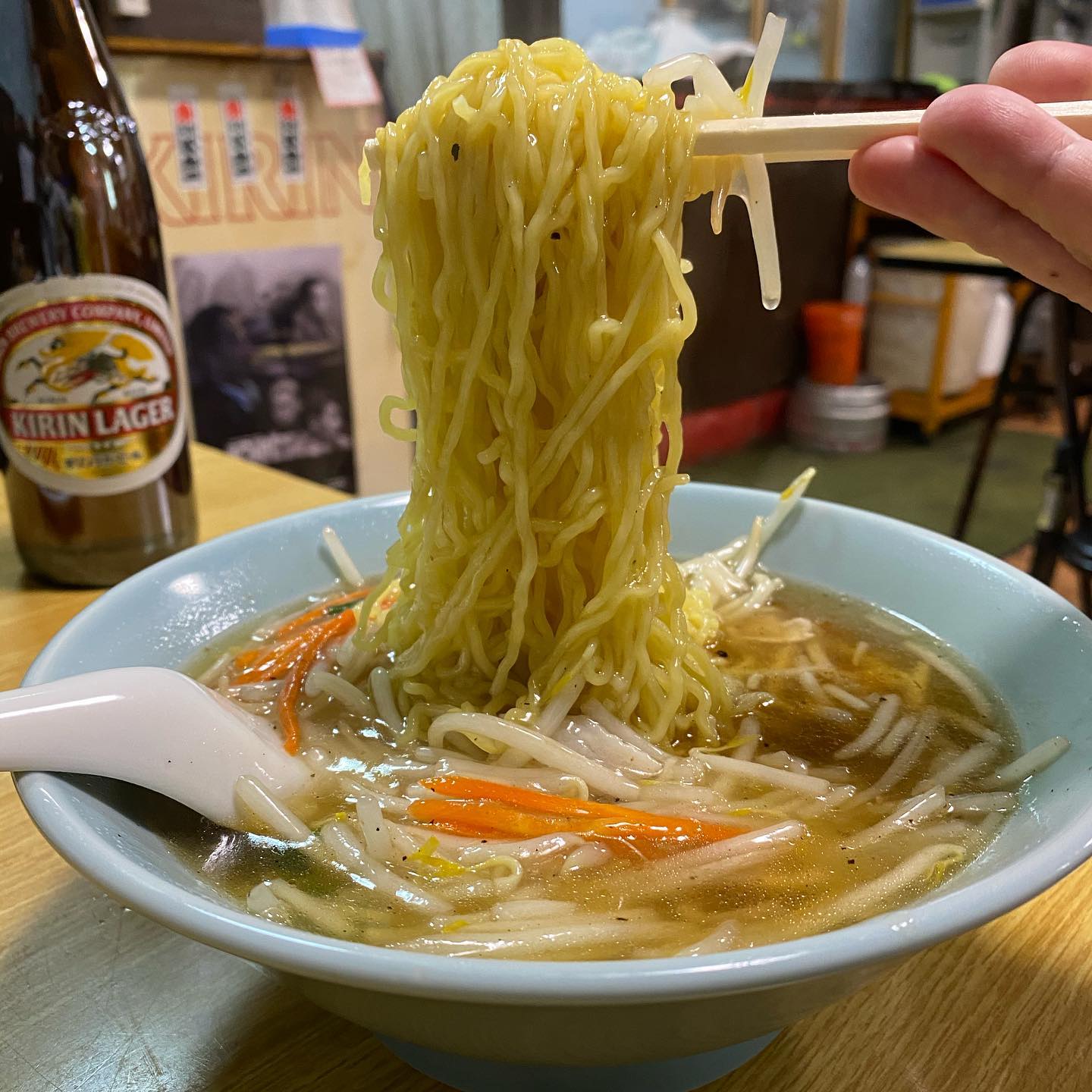 学芸大学の町中華『二葉』は、モヤシソバと餃子、キリン大瓶を楽しめる居心地の良い店。テレビの音楽が流れる、時間が止まったような空間で、また訪れたくなる味と雰囲気です。