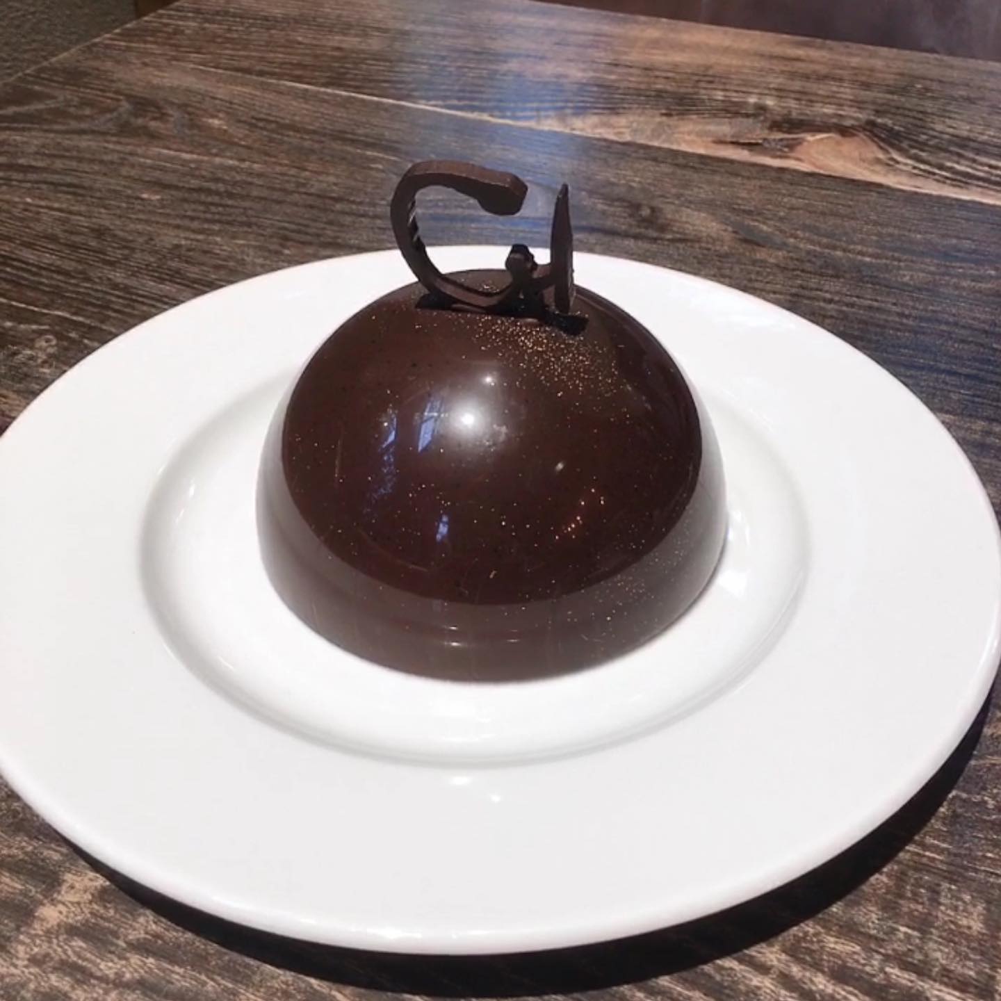 ショコラドームがクリームソースの熱で溶け出すと中からバニラ...