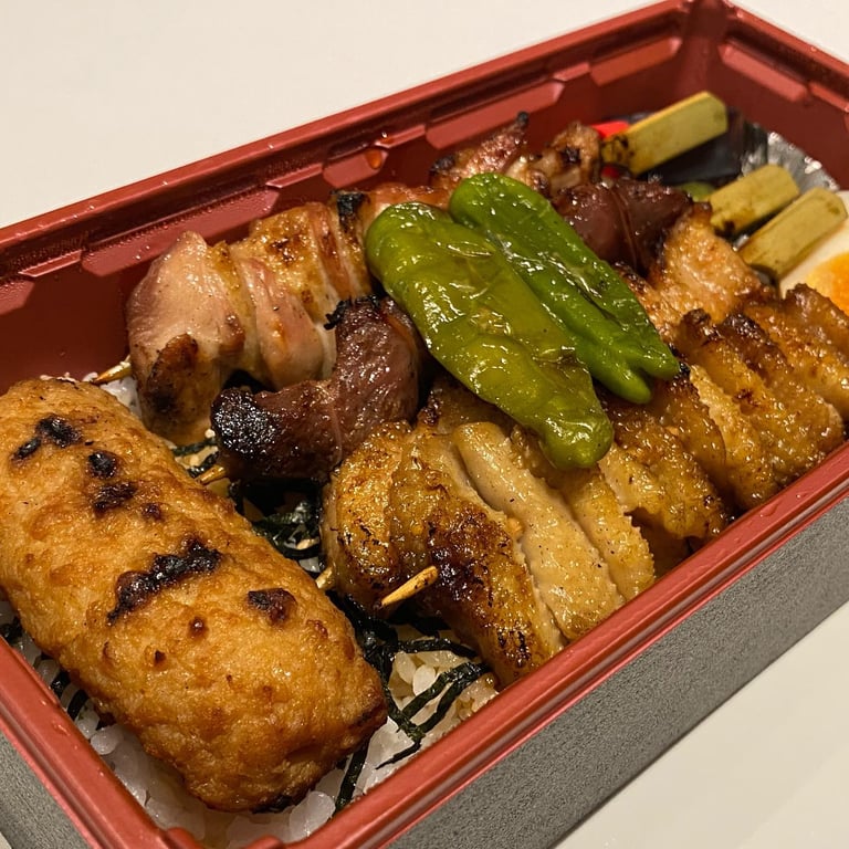 大井町の俺のやきとりは、原価55%程度の高品質食材を安く提供。炭火焼きの串を中心に、焼鳥重・丼・天丼などテイクアウトも豊富。タレとネギ塩だれを選べ、串のみの持ち帰りもOK。中央キッチンの活気ある雰囲気と駅近の立地が魅力。