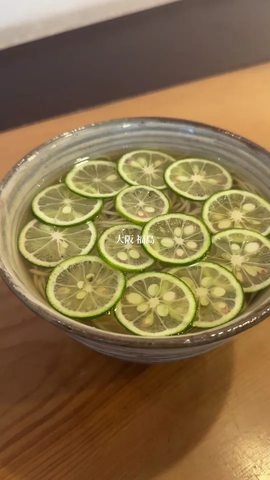 福島区の蕎麦店・まき埜は、すだちそばが看板メニュー。すだちの芳香と地鶏の旨味が融合した出汁を楽しめ、蕎麦の配合をメニューごとに変えるこだわりがあります。冬でも冷たい出汁が美味しい一杯です。