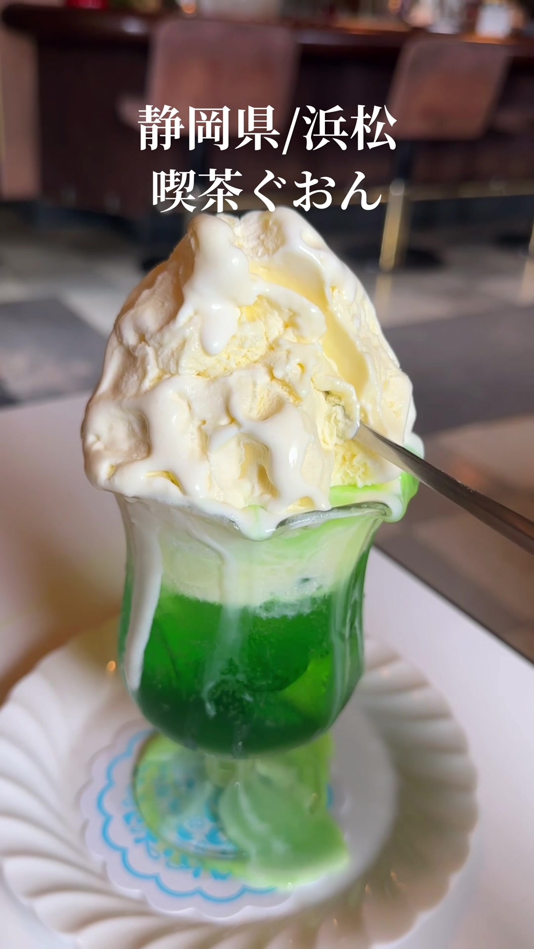 1971年に創業した喫茶ぐおんのクリームソーダ🤤アイス山盛りで最高〜#喫茶ぐおん#浜松