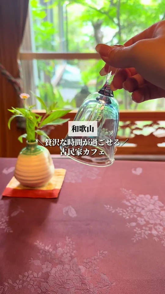 明治期の古民家をリノベしたカフェ。漆器の飾りと広い部屋、窓際席と庭の景観が魅力。早なれ寿司と茶粥のセットやそばが楽しめ、デザートも充実。テイクアウト可、40席、10:00–17:00、火・水休。