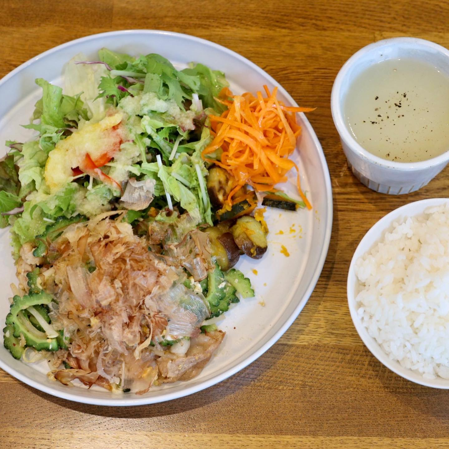 愛知県豊田市のオシャレカフェ・ジレカフェは、季節の野菜とスープをテーマにしています。ランチはプレートが中心でご飯のおかわり自由。豚バラとゴーヤのチャンプルーなど野菜が主役の一皿と、シャインマスカットのショートケーキもおすすめです。