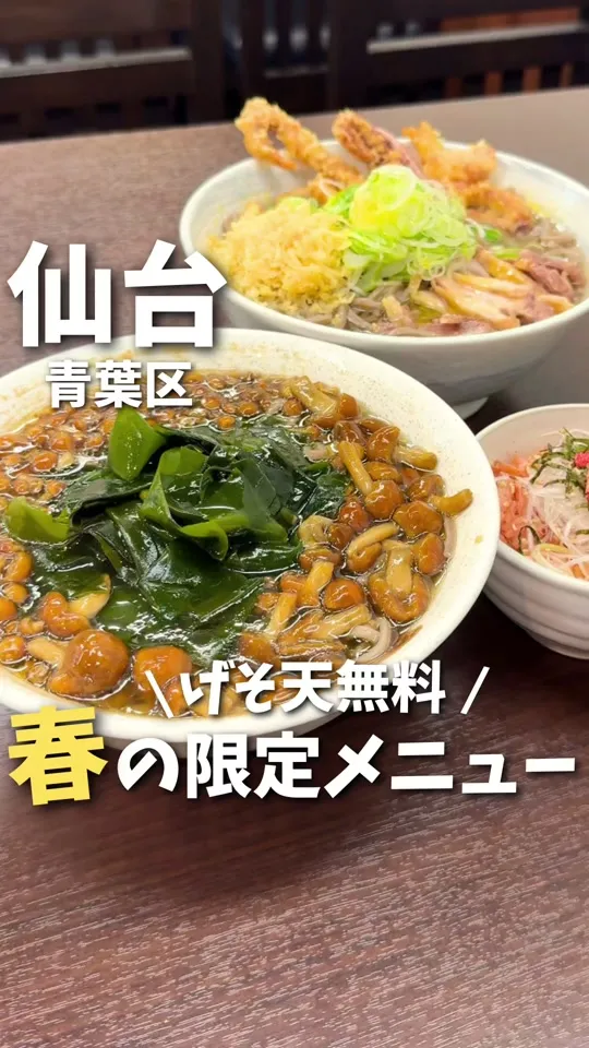 ・三陸の春一番ワカメと親子なめこのお蕎麦注文の方は、ゲソ天トッピング(別皿もOK...