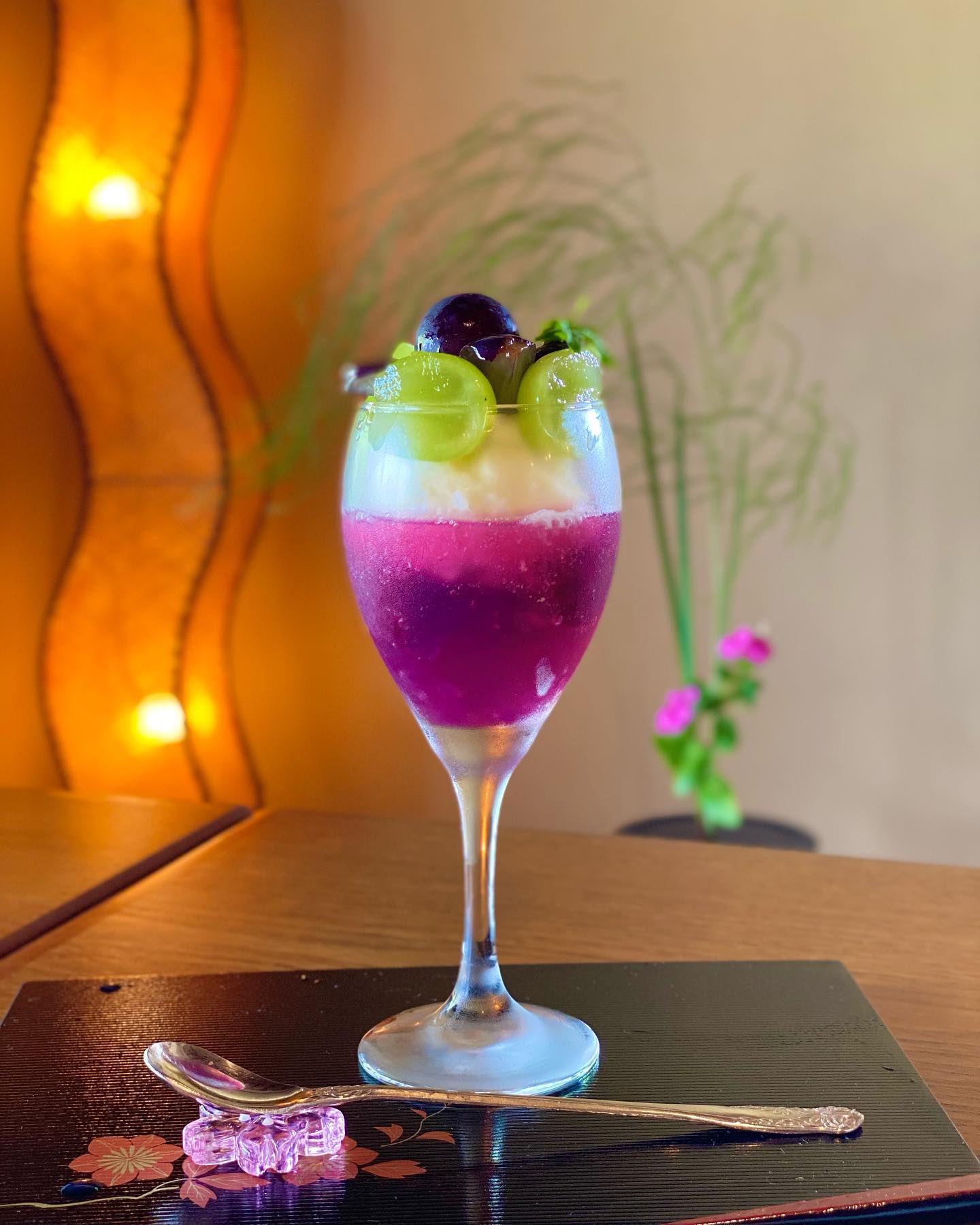 香川県丸亀市の古民家風カフェ『小豆カフェ あんこ』では、定番のおはぎやいちご大福に加え、秋の限定“ぶどうのアイスパフェ”を楽しめます。地元マスカットを使い、紫からグリーンへと変化するゼリーとシャリシャリジェラート、凍らせたぶどうの食感が魅力です。9:00〜16:00、駐車場あり。定休日は木・金・日です。