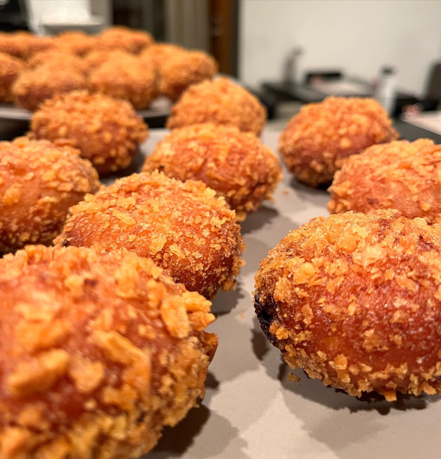 写真は試作中のカレーパンです。
