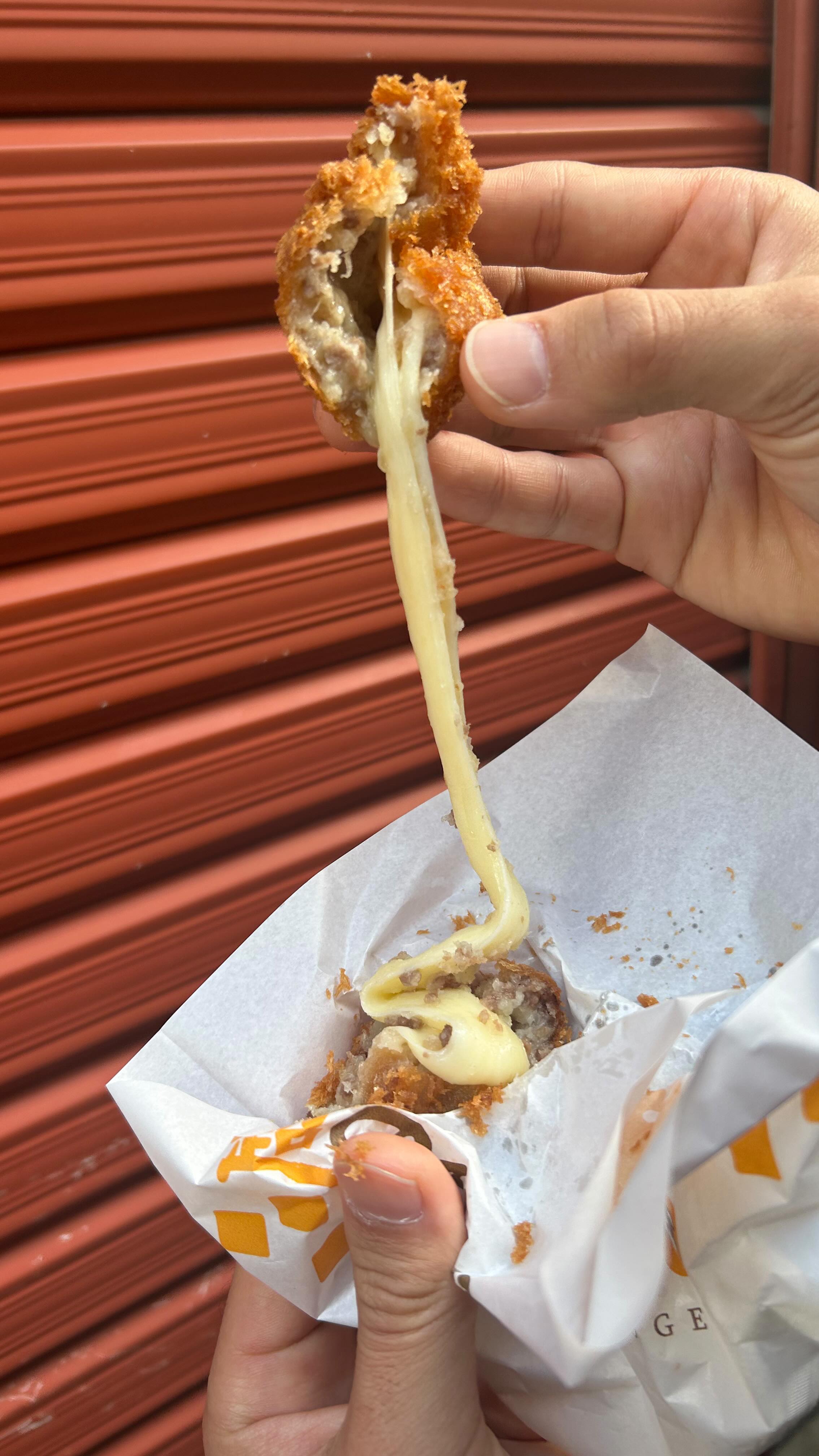 今、浅草にあるくろげではめっちゃのびるチーズメンチが話題になってるの!さっそく潜入調査してきたよ!#浅草グルメ #チーズメンチ #浅草食べ歩き #tiktokグルメ