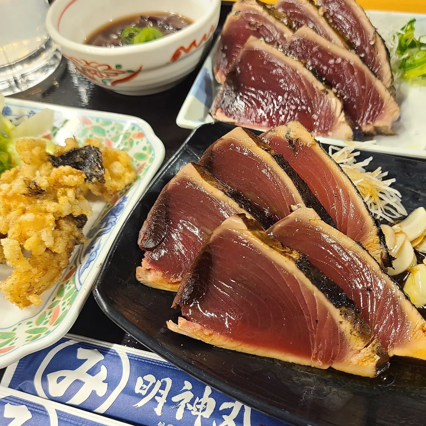 ▶鰹のたたき食べ比べ(塩・タレ) / 明神丸