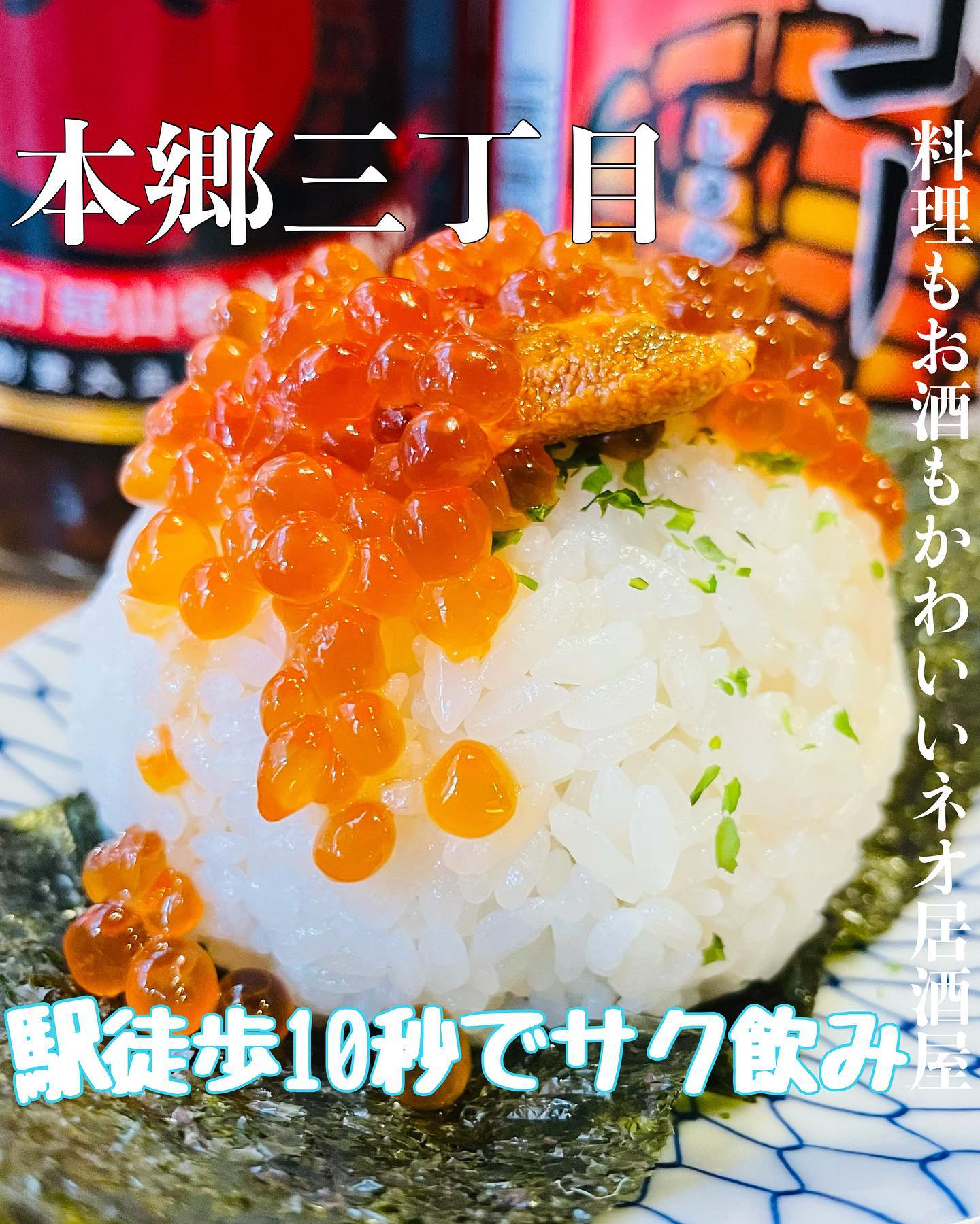 本郷三丁目駅すぐのネオ大衆居酒屋『酒トナデシコ七変化』は、7色のナデシコサワーとインスタ映えメニューが話題。雲丹キャビア煮卵や痛風おにぎりなどボリューム豊富で、1階は立ち飲み、2階席も利用可。