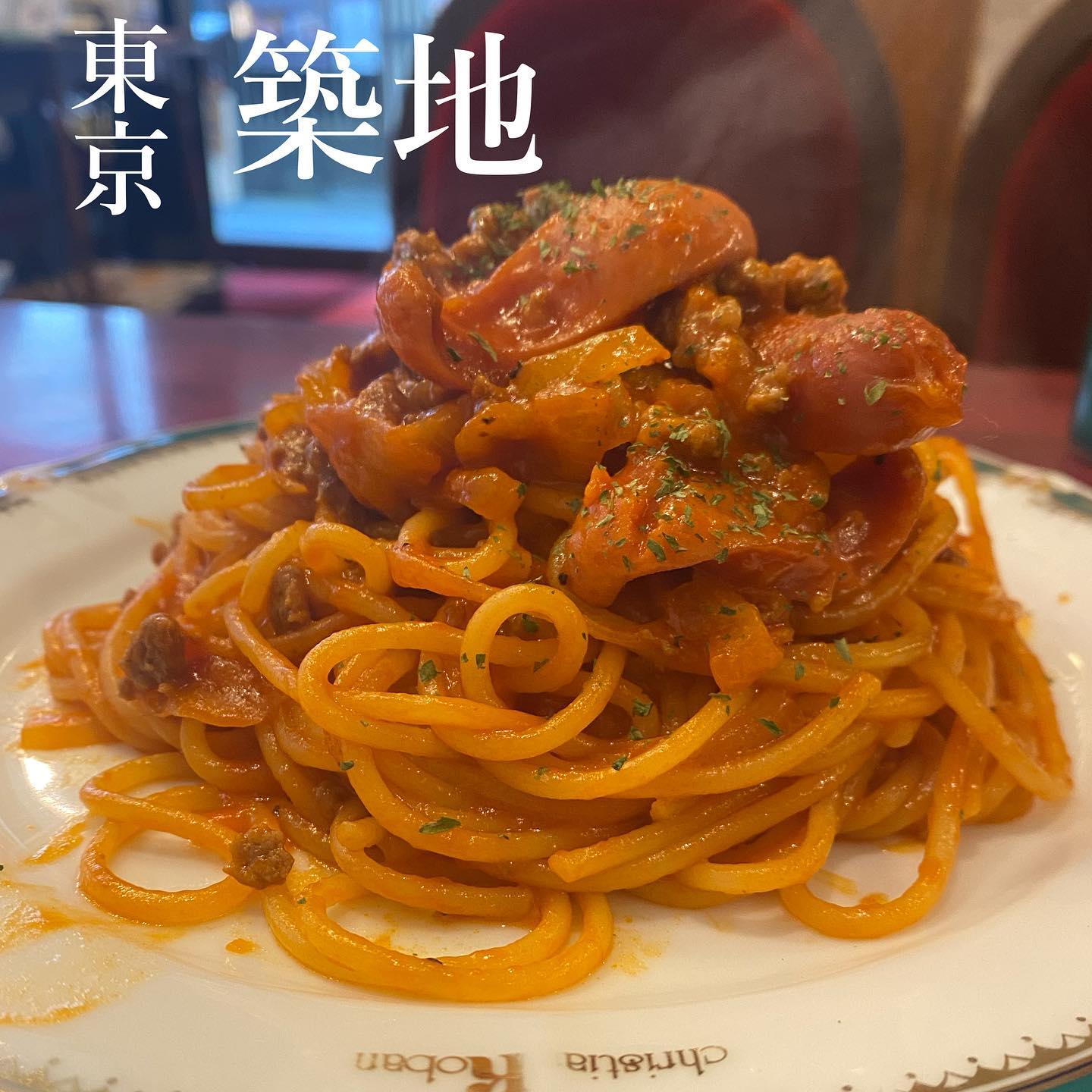 築地の喫茶店レンガは看板の特製ナポリタンを、国産ひき肉と玉ねぎの濃厚ソースで。アルデンテ麺と辛口ソーセージの甘酸っぱいバランスが魅力。セットにはサラダ・スープ・コーヒーまたは紅茶付き、店主の温かい接客も特徴。