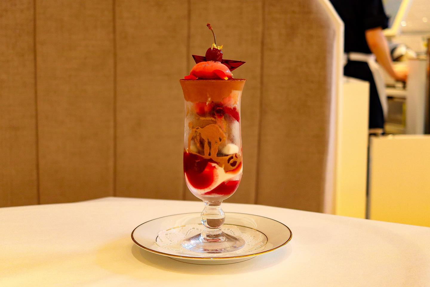 資生堂パーラーは伝統の味と華やかな演出が魅力の老舗カフェです。Hello Kittyコラボのスペシャルパフェは、バニラアイスをベースにリンゴジャム・紅玉ソース・苺ソース・苺アイスを重ねた優しい味わいで、期間限定で楽しめます。コラボは店舗限定で、前後半でランチョンマットの柄が変わるなど来店体験も楽しいです。
