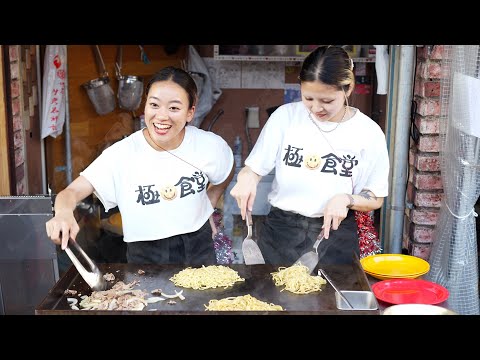 Powerful women's meat fried noodles...