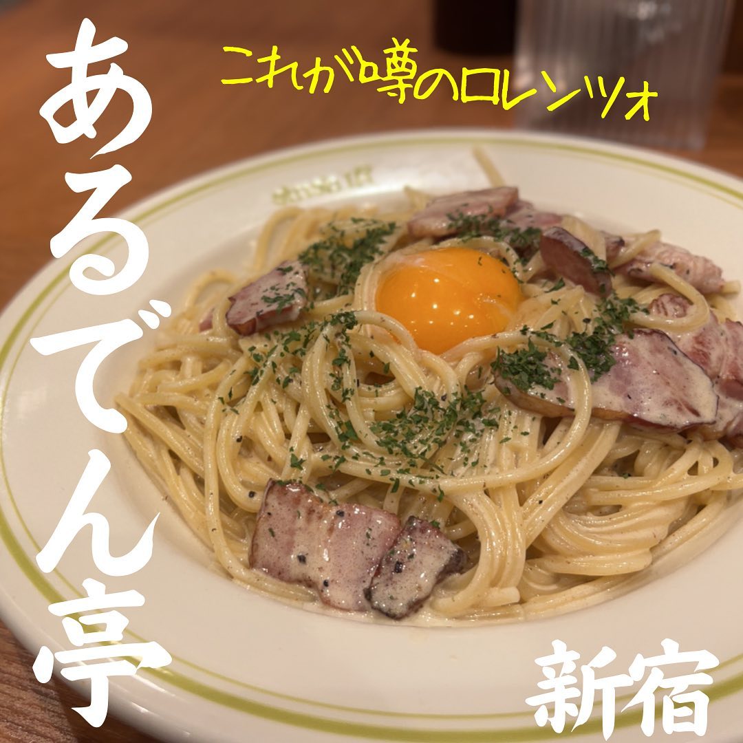 新宿センタービルにあるパスタ店あるでん亭は、塩味強めのベーコンとガツンとしたニンニク・鷹の爪が効くアルデンテ麺が自慢。クリーム控えめの本場カルボナーラやサワークリームがアクセントのロレンツァなど多彩なパスタを楽しめます。昼は行列も。