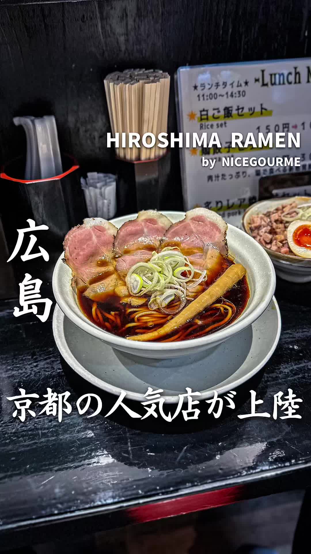 京都で大人気のラーメン店が広島に初出店。香ばしい全粒粉のモチモチ麺と、凝縮された旨みの濃いスープが相性抜群です。あっさり醤油ベースで、炙りレア焼豚丼もおすすめ。