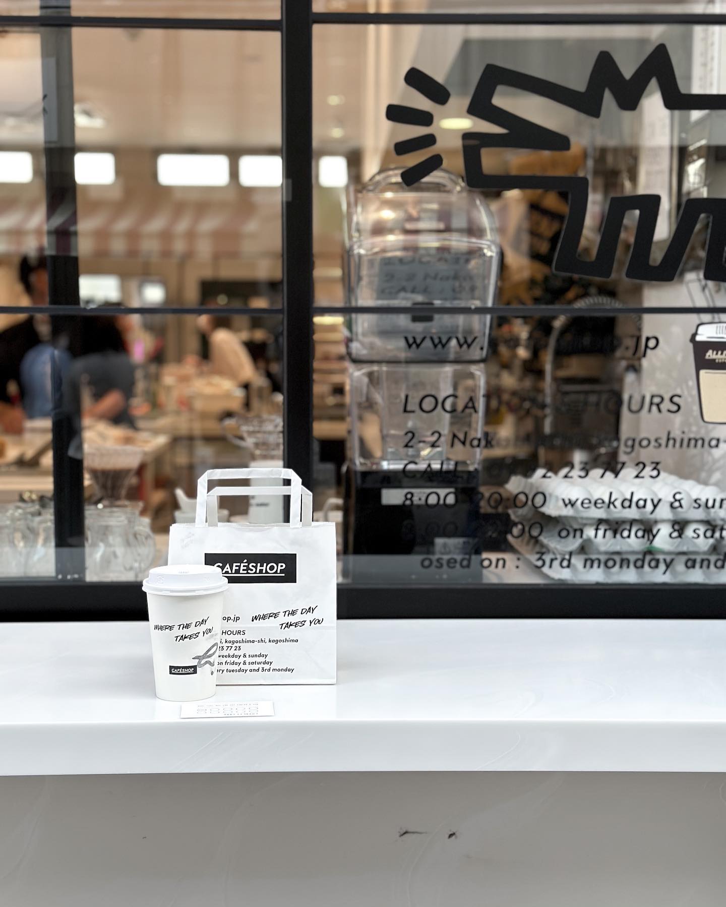 天文館のCafeShopは白を基調とした落ち着いた店内で、エスプレッソチーズケーキやプリン、パイ・キャロットケーキなど口どけのよいスイーツと多彩なドリンクを楽しめます。agnes b.とのクリスマスPOPアップも話題。毎日8:00〜20:00営業です。