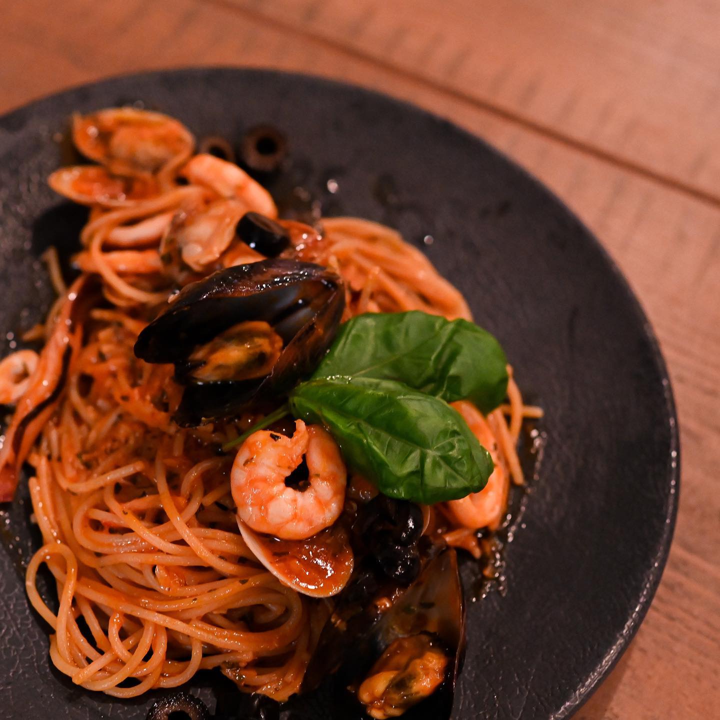 ❐ 魚介たっぷりの旨辛トマトパスタ (¥1,250)