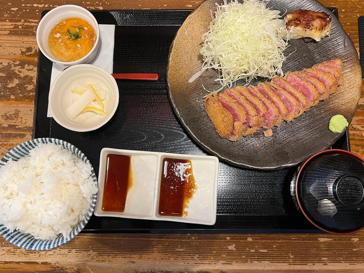 浜松の牛カツ店・鈴乃屋は、牛かつ定食や上ロースカツなど部位が選べるのが特徴。わさび醤油・オニオンソース・岩塩など味の変化を楽しめ、長時間待っても訪れる価値のある人気店です。