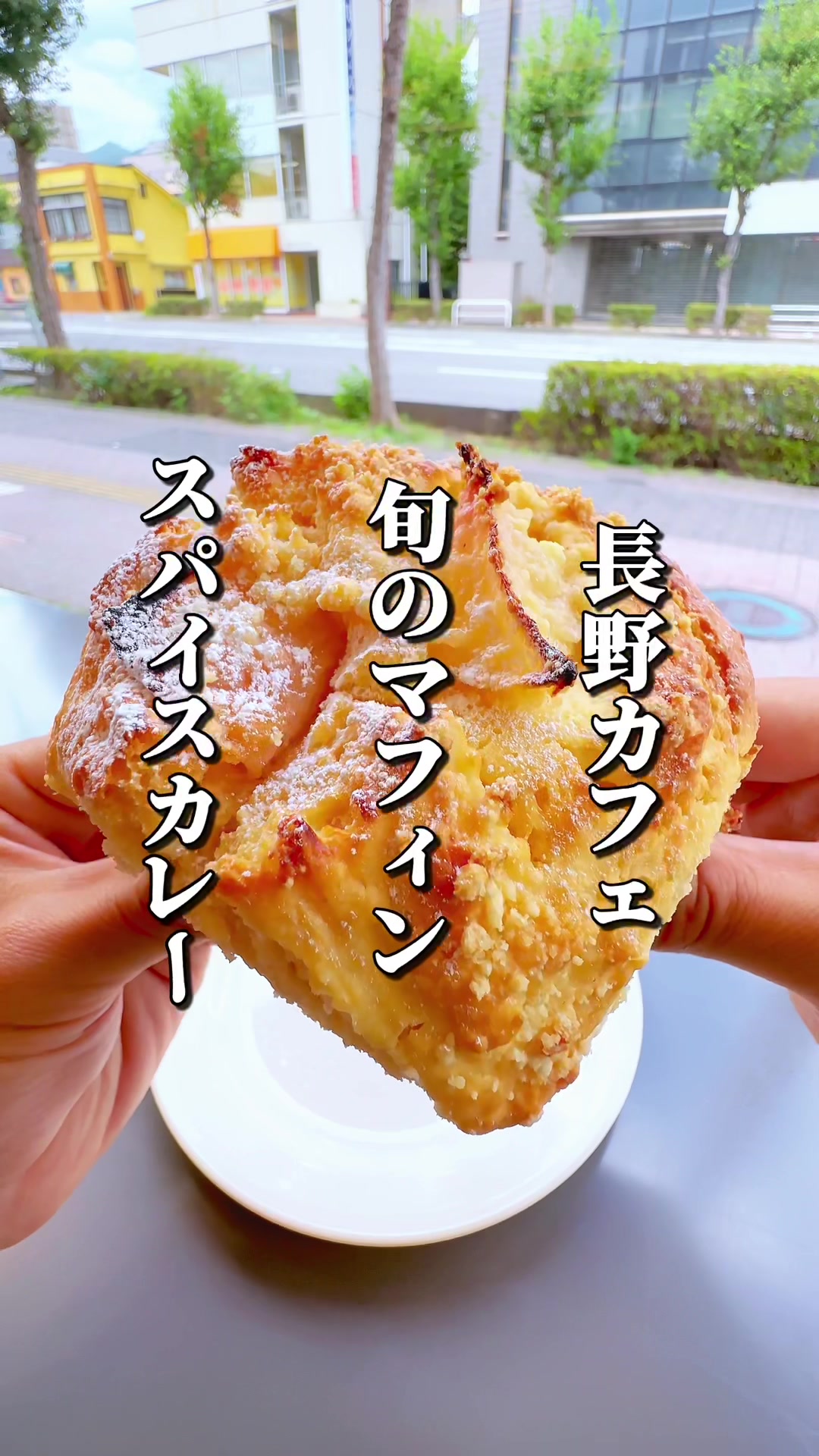 長野市役所近くのカフェ『North South East West』は、amijok2号店。焼き立てマフィンは温めて提供され、ボリューム満点でクリームと果肉がたっぷり。モーニングのトーストやカレーも人気。テイクアウト可。9:00〜18:00営業。