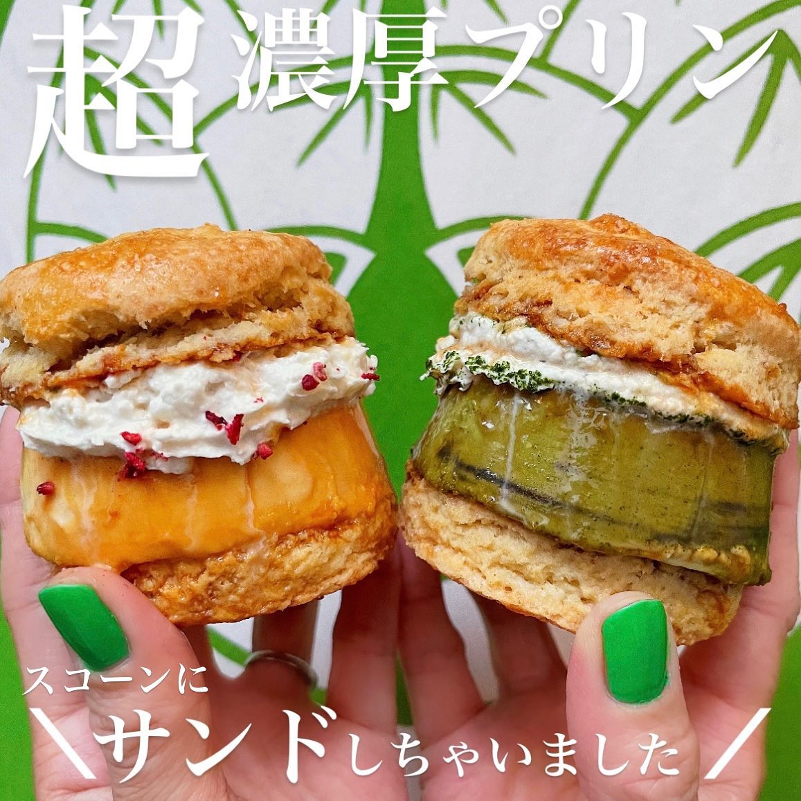 抹茶プリンのスコーンサンド!衝撃のビジュアルに想像を越えた濃厚プリン!!《Kimi Natural 73+cafe📍池袋》