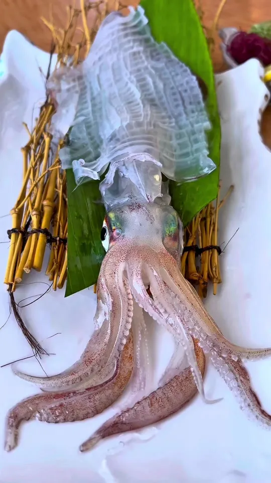《新鮮すぎる極上イカの活き造り(Exquisitely fresh squid sashimi served ikezukuri-style)》