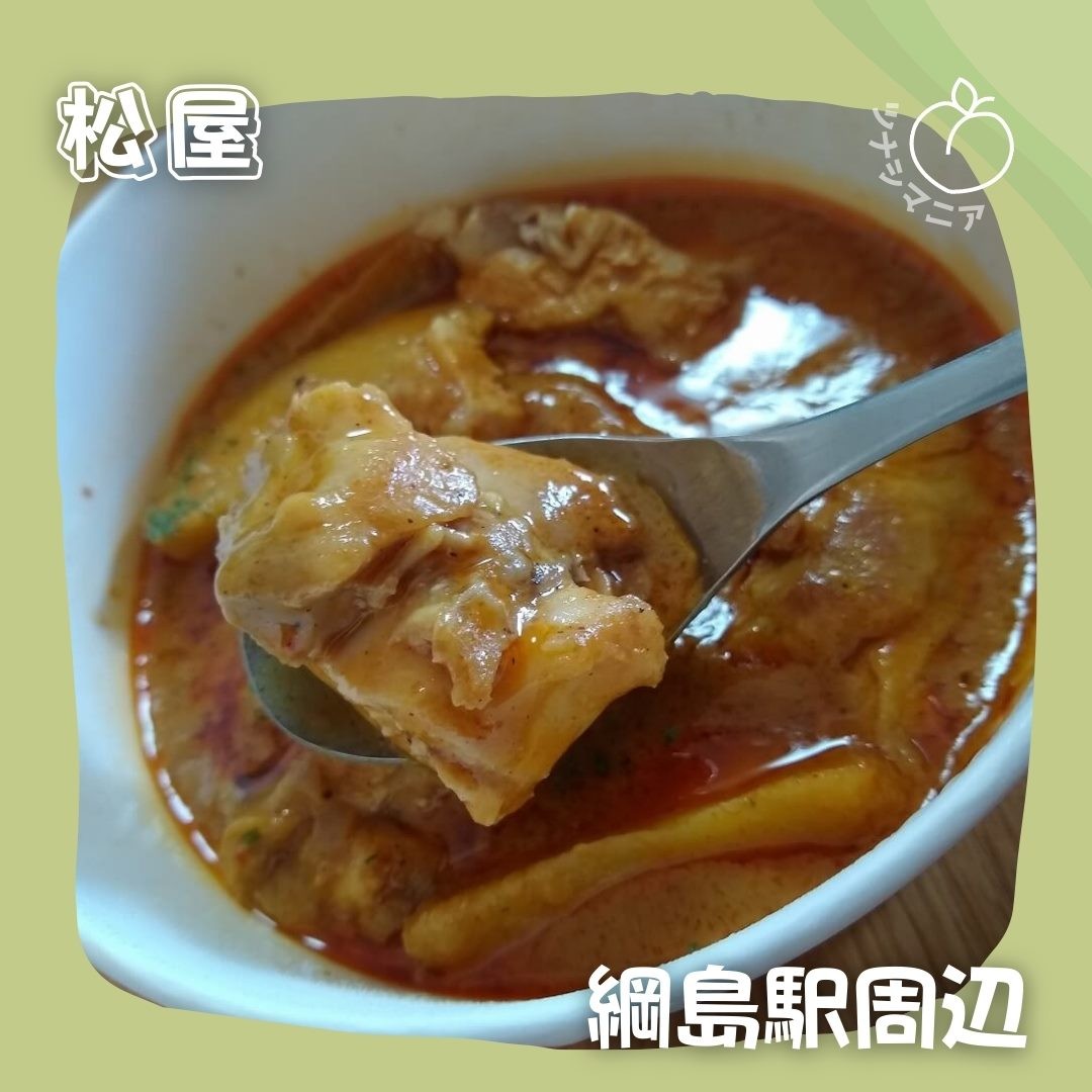 綱島駅周辺の松屋では、復活したマッサマンカレーが楽しめます。タイカレーの一種で、辛さは控えめ、マイルドで食べやすいファストフード感が魅力です。カロリーは高めなのでご注意ください。