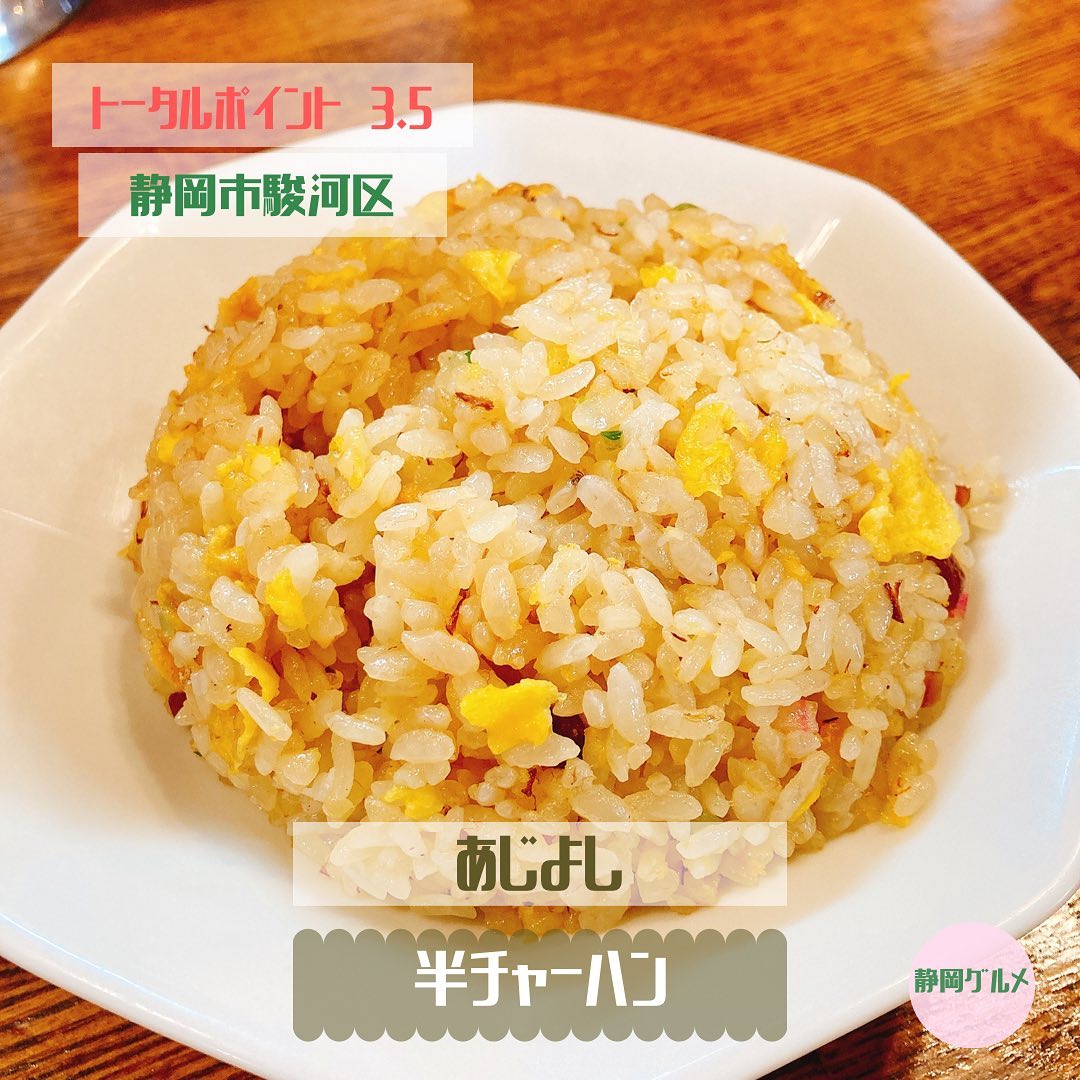静岡市の町中華・味よしです。自家製麺と昔ながらの中華そばを軸に、塩・醤油・激辛・味噌など多彩なラーメンと餃子を提供します。半チャーハンはしっとり系でボリューム感があり、ラーメンと一緒に食べると味が引き立ちます。