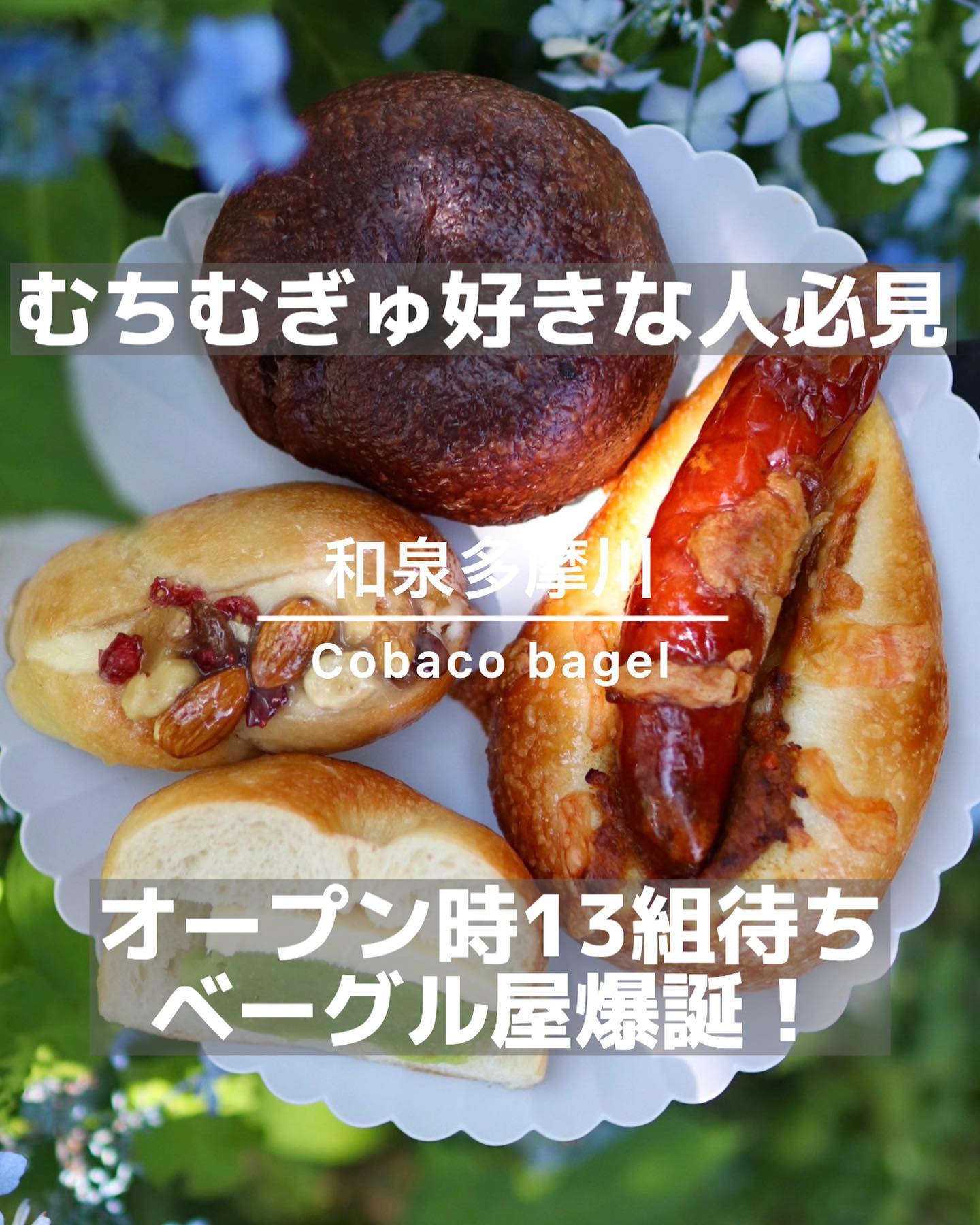 小田急線和泉多摩川駅からすぐ、商店街を入ると左手に見える可愛らしい鳩のロゴマークと青いテントがトレードマークの「こばこベーグル」(@cobaco_b...