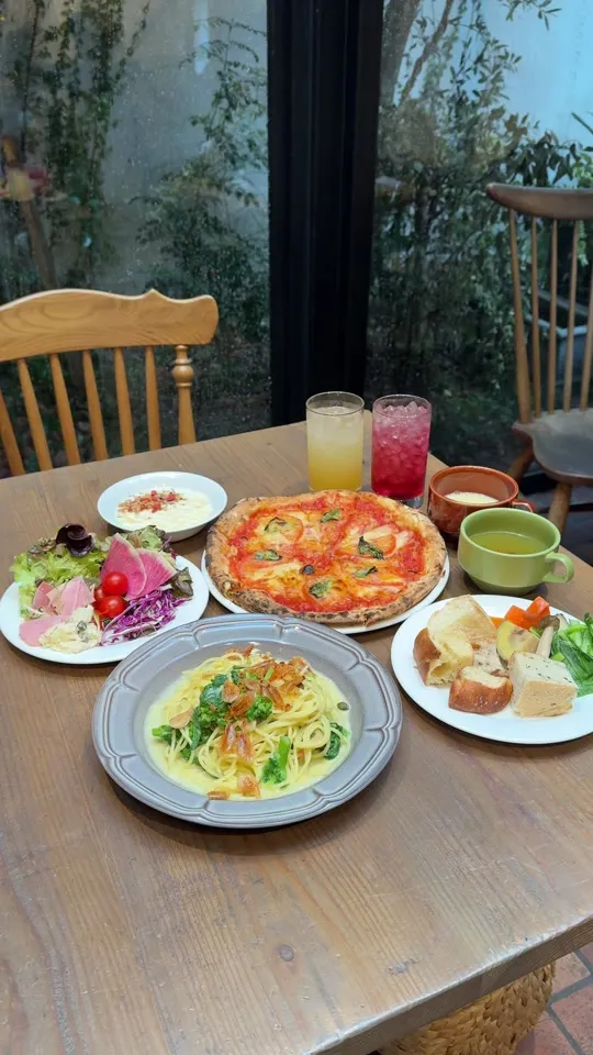 大阪市西区北堀江のファームカフェ マザーズ堀江店は、時間無制限のランチビュッフェが魅力。契約農家の新鮮野菜・パン食べ放題・野菜スープ・紅茶20種以上・ヨーグルトビュッフェ付き。メインはマルゲリータピザまたはアンガス牛大根ソース。ベビーカーOK・テラス席有・9:00-16:00・日曜不定休。