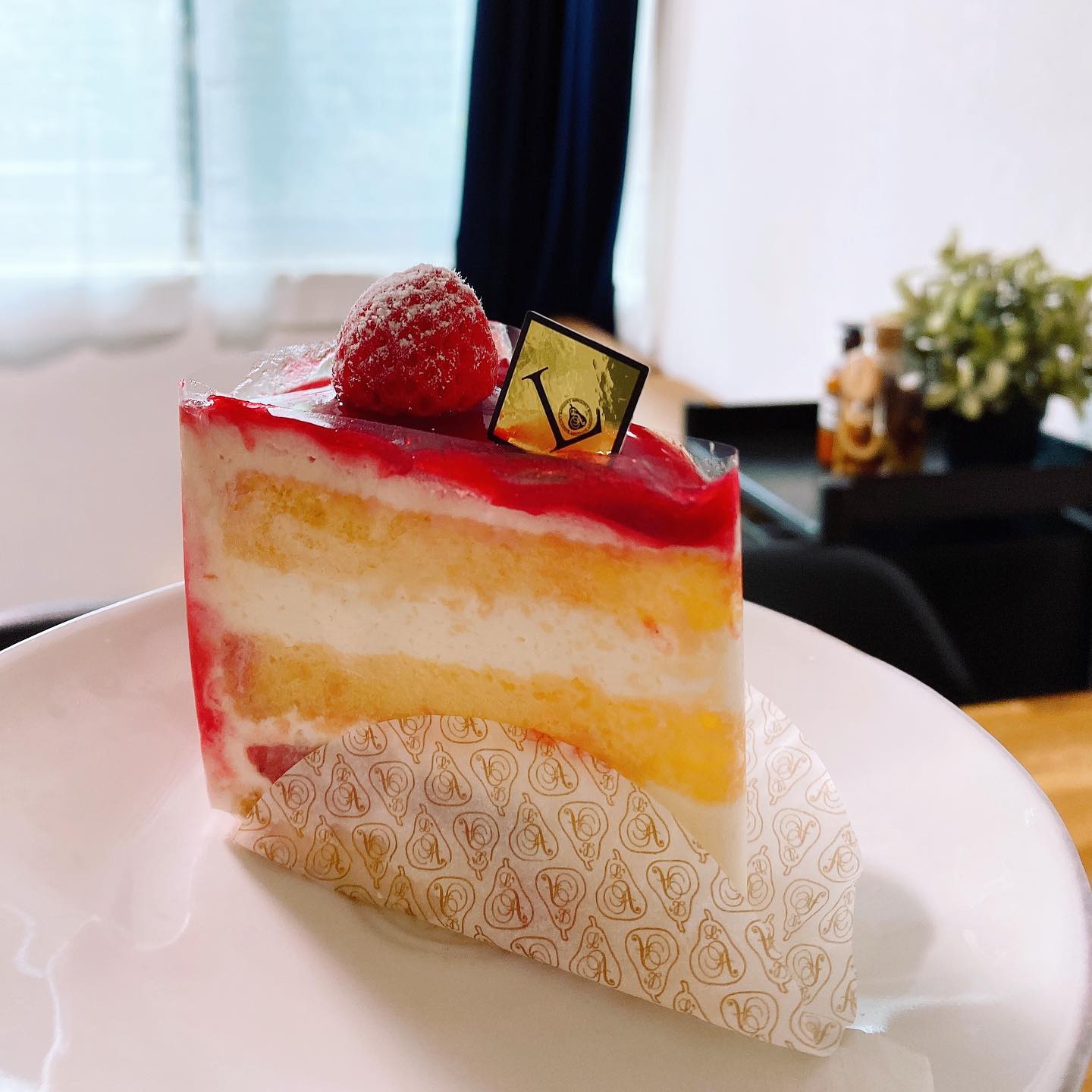 ラズベリーソースの酸味がスポンジとクリームを立...