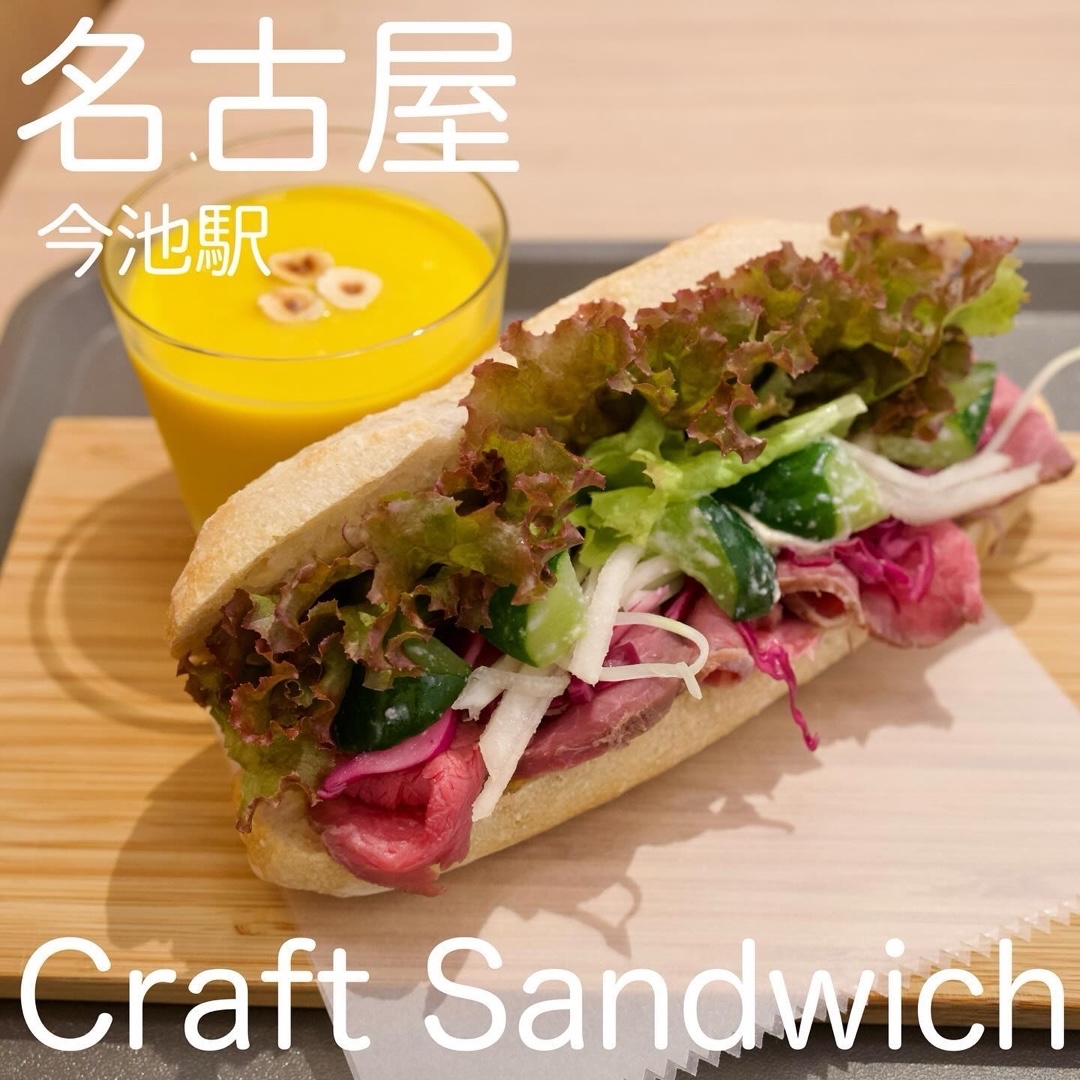 今池の Craft Sandwich は、端から端まで具がぎっしり詰まり、歯ごたえのあるバゲットが特徴です。ローストビーフ+スープのセットや月替わりメニュー、人気のサバサンドなど、フランス人オーナーの温かな雰囲気が魅力のサンドイッチ店です。