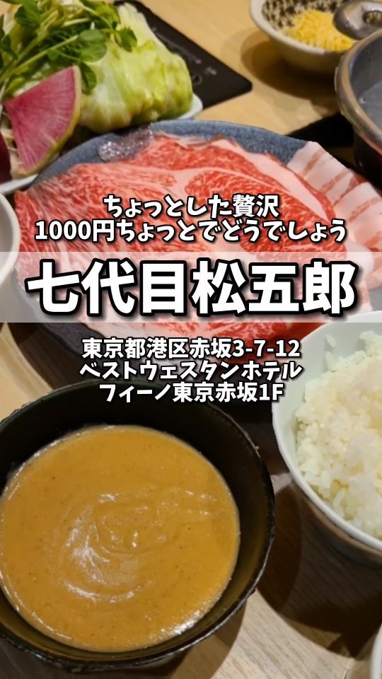 七代目松五郎は、熟成黒毛和牛と豚バラを使うしゃぶしゃぶ・すき焼き店です。割下は水・添加物なしで肉の旨味を引き出します。ランチの満腹セットは180g構成でご飯・麺付き、1200円と神コスパです。ひとりしゃぶしゃぶも推奨します。