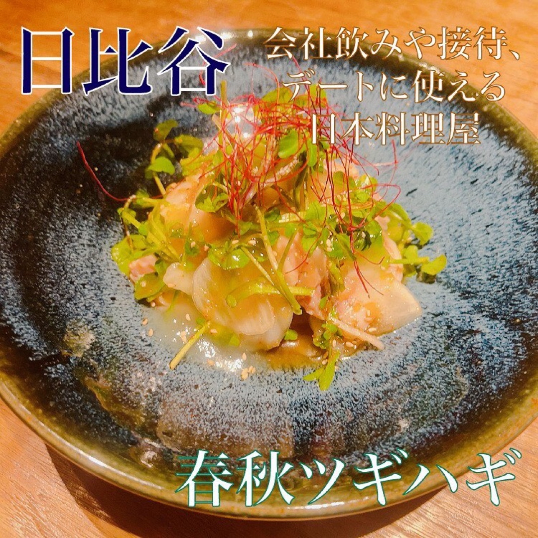 日比谷駅前のビル地下に位置する和食店。広い店内と掘りごたつの個室があり、接待や大人数の会食に適しています。前菜1,000〜2,000円、メイン2,000〜3,000円のコース中心で、日本酒に合う和食が豊富。日比谷・有楽町の立地と落ち着いた雰囲気でビジネス利用におすすめ。
