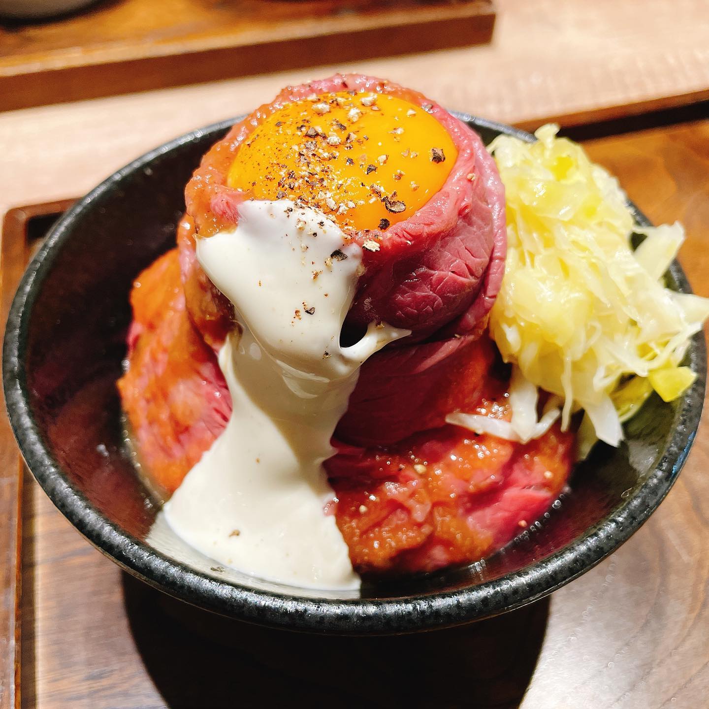 見た目がインパクトのあるローストビーフ丼!