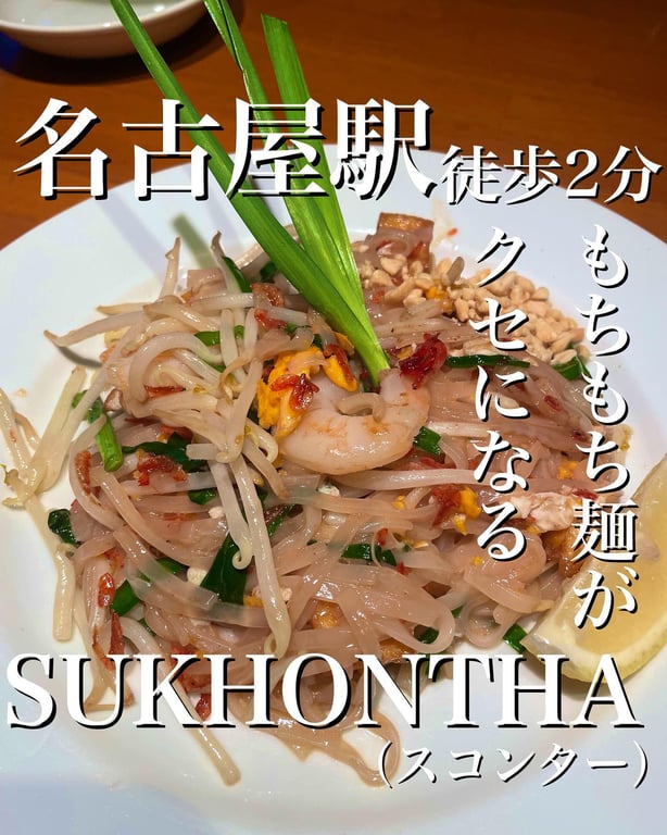 名古屋駅すぐのタイ料理店・スコンター名駅店。もちもちパッタイとぷりぷり海老揚げ春巻きが定番。タイ屋台ヌードルやタイ式おしるこ、ココナッツミルクアイスとタピオカの組み合わせなど異国情緒あふれるメニューが魅力。スタッフは丁寧で、通し営業です。