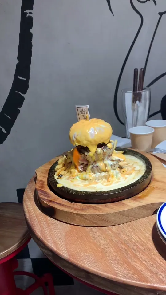炎があがるあふれるチーズの溶岩チーズバーガー🧀
