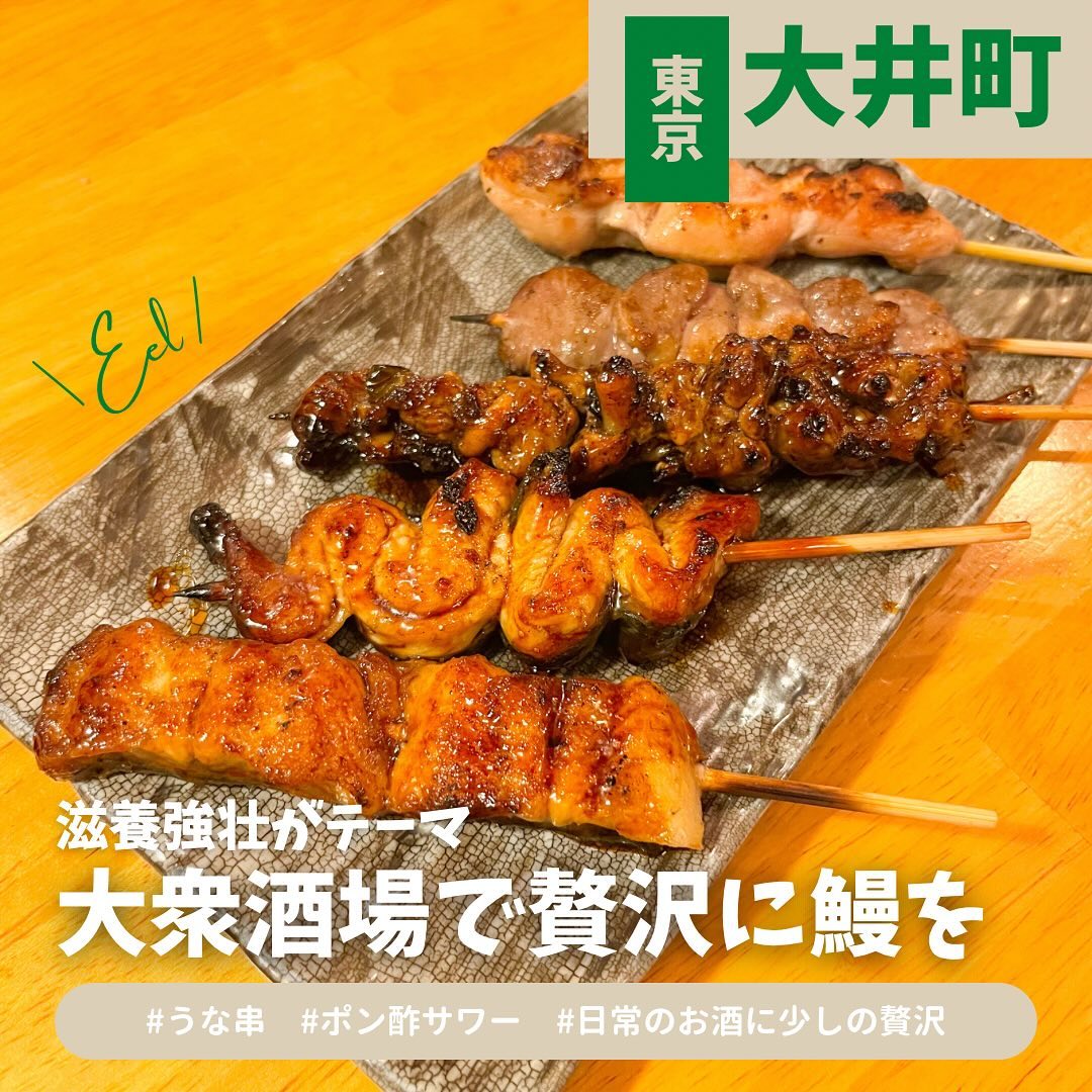 大井町の『うなくし』は、香ばしく艶やかな鰻を使った丼・鰻重・ひつまぶしなどの江戸前鰻料理と天ぷら定食が楽しめるお店です。『う福』は鰻を串にした大衆酒場で、やみつき骨せんべいなどインパクトある一品が人気です。