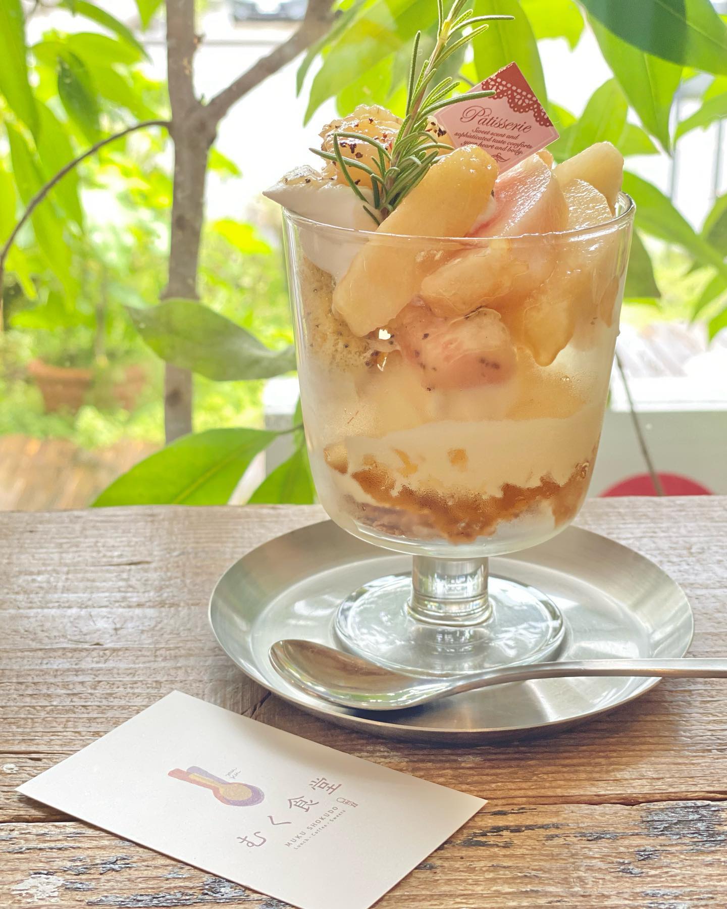 三豊市のむく食堂は週替わりの手作りランチが魅力。鶏むね肉のチキンカツトマトソースや夏野菜のキーマカレーなど、体に優しい味わいです。季節の酵素ジュースと焼菓子も充実。デザートは赤桃のアールグレイパフェがおすすめです。