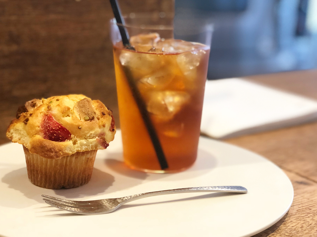 緑地公園のマフィンとタルトの専門店・akkord。11時30分の開店後、約1時間で完売する人気店のため、2日前の予約をおすすめします。外はカリッと中はふんわりのマフィンと、苺を使ったタルトなど季節の味が楽しめます。