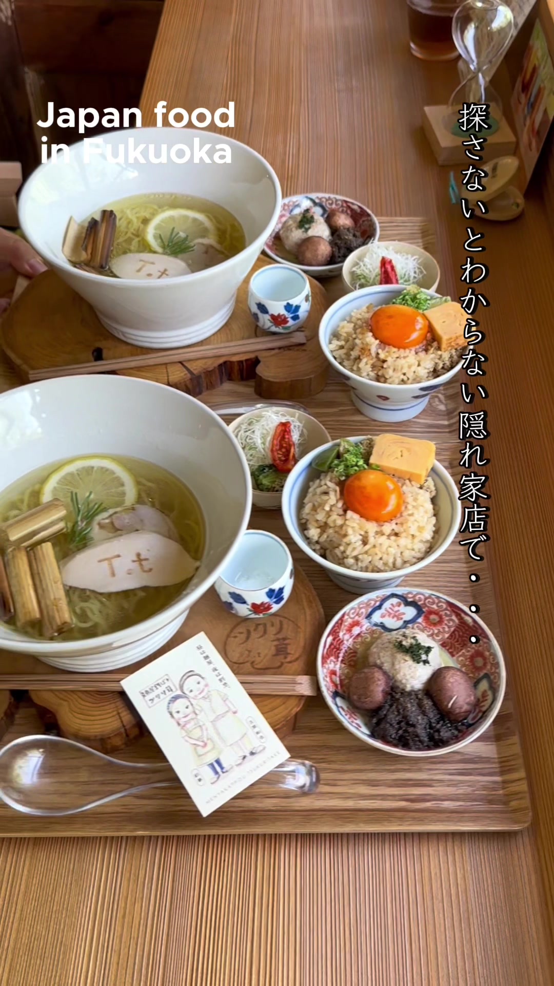 🌿🍜福岡の住宅街に佇むオシャレラーメン店!!自然を眺めれるカウンター席で頂く『塩ラーメン』&『漬け卵黄かしわ飯』🍜🌿