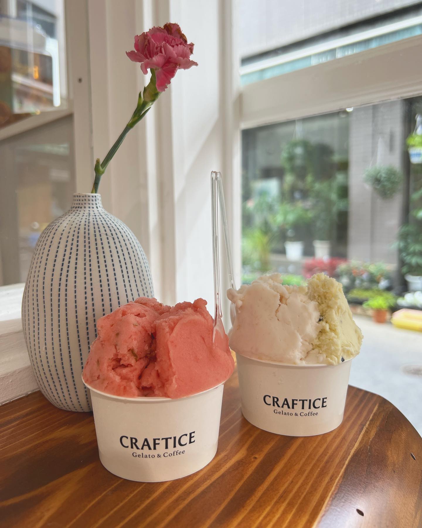 亀有駅から徒歩3分のCRAFTICEは、静岡産オーガニックミントを3種ブレンドしたミントチョコチップジェラートが自慢です。滑らかなミルクジェラートと爽やかな風味が特徴。店内外席があり、テイクアウトも可能です。11:00〜19:00です。