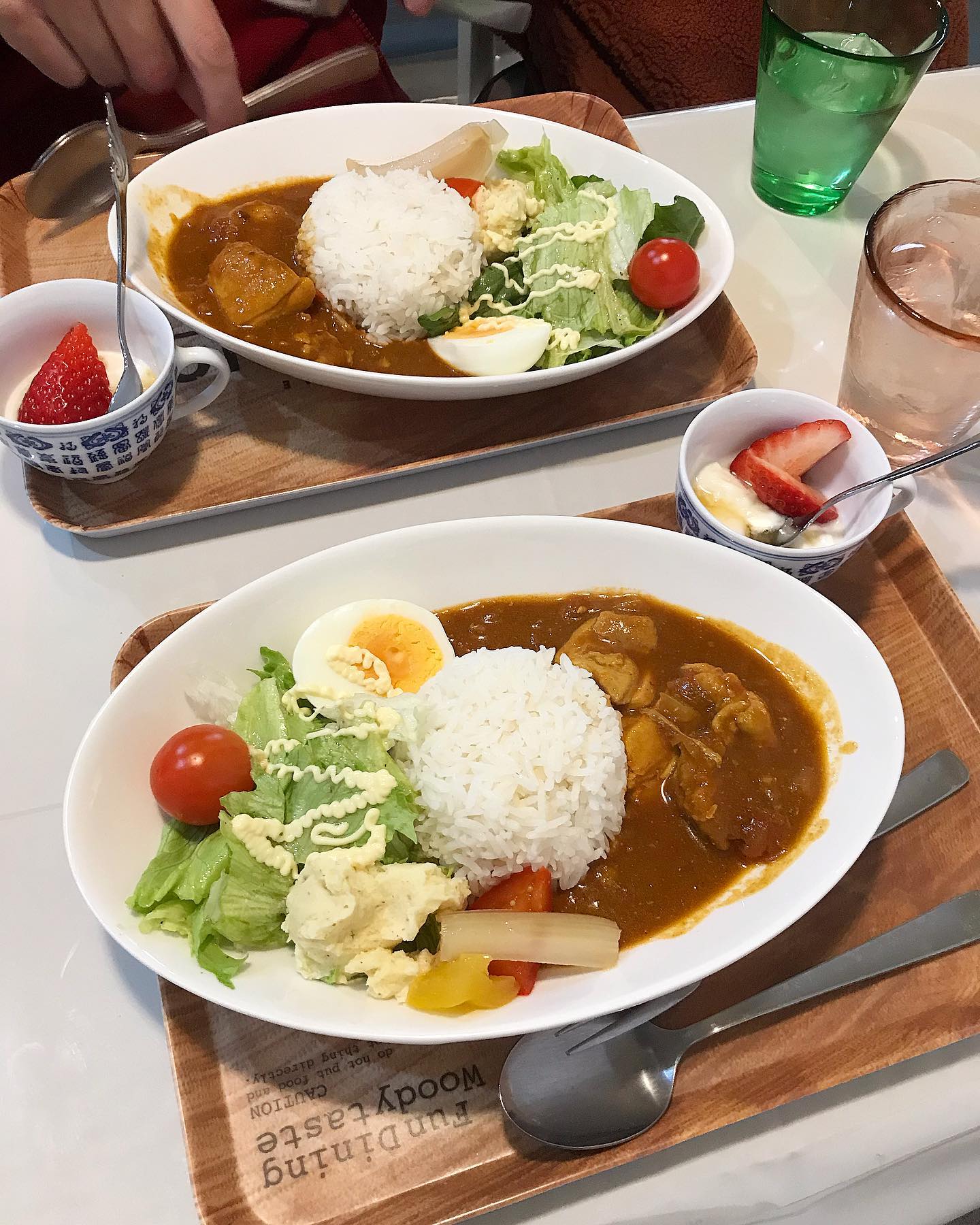 アトリエカフェよぎは、主人の手作りとギャラリー風の落ち着いた空間が魅力。インドチキンカレー850円(サラダ・紅茶付き)と、茶葉の香るミルクティーでリラックスできます。1月開店、青梅駅と昭和レトロ商品博物館の中間に位置します。